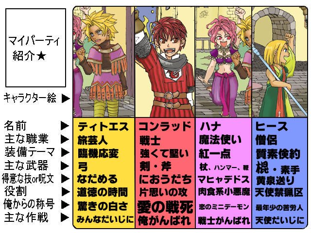 じゃこ Twitterissa 何をつぶやいたらいいのか分らないので 自己紹介がてら絵を貼ります 私がよく描くイラスト ドラクエ9マイパーティ 彼等に愛着があるので ずっとチマチマと絵や漫画を描き続けています 自己紹介してみる ドラクエ9